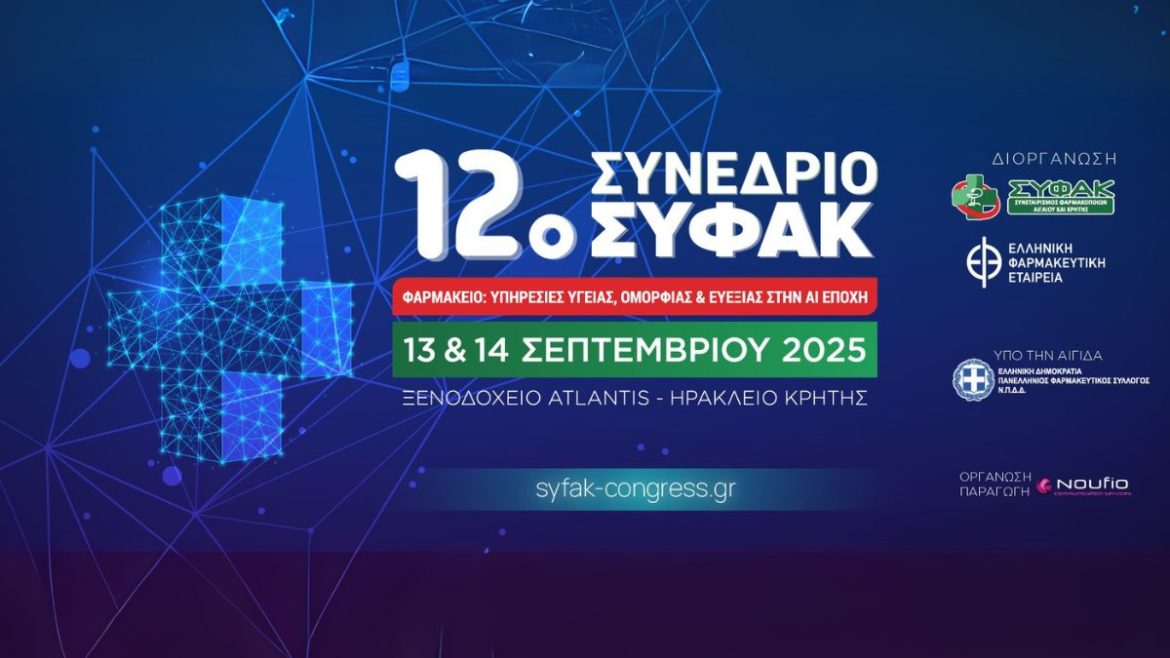 Οκτώ στρογγυλά τραπέζια και 4 ομιλίες επιστημονικού ενδιαφέροντος θα λάβουν χώρα στο πλαίσιο του 12ου Συνεδρίου του ΣΥΦΑΚ «Φαρμακείο: Υπηρεσίες Υγείας, Ομορφιάς & Ευεξίας στην ΑΙ Εποχή», που θα πραγματοποιηθεί στις 13 και 14 Σεπτεμβρίου 2025, στο ξενοδοχείο Atlantis, στο Ηράκλειο της Κρήτης.