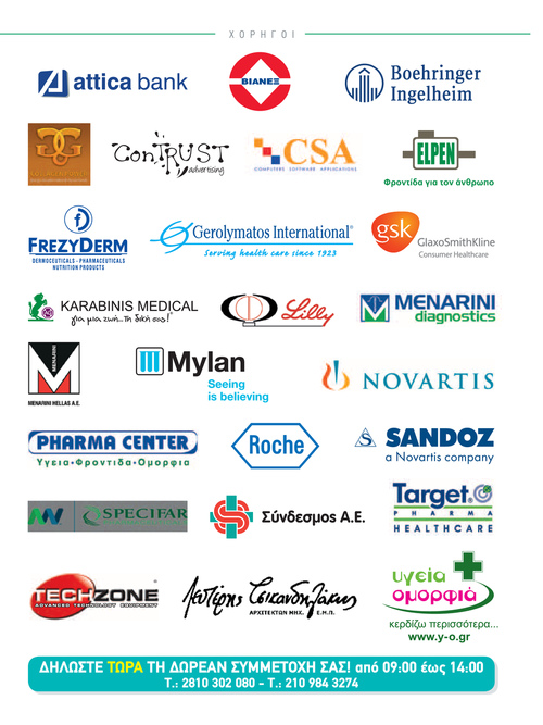 Χ Ο Ρ Η Γ Ο Ι CMYK: 80/10/45/0 CMYK: 0/90/85/0 ΔΗΛΩΣΤΕ ΤΩΡΑ ΤΗ ΔΩΡΕΑΝ ΣΥΜΜΕΤΟΧΗ ΣΑΣ! από 09:00 έως 14:00 Τ.: 2810 302 080 - Τ.: 210 984 3274