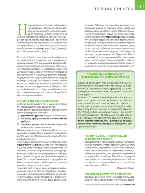 Θεωρούμε ότι υπάρχει το εξής παράδοξο στην Ελλάδα: μέχρι και πριν 2 χρόνια σχεδόν το σύνολο των φαρμαPHARMACY management KAI EΠΙΚΟΙΝΩΝΙΑ • ΤΕΥΧΟΣ 19 | ΣΕΠΤΕΜΒΡΙΟΣ 2013