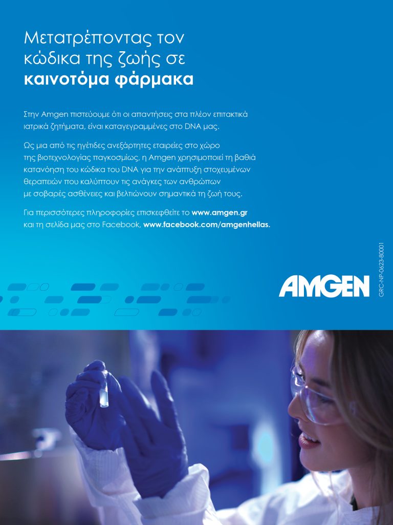 Η Amgen, επικεντρώνεται σε θεραπευτικές περιοχές όπου εντοπίζεται ακάλυπτη ιατρική ανάγκη, αξιοποιώντας την πολύχρονη εξειδίκευση και βαθιά γνώση της παραγωγής βιολογικών παραγόντων προς όφελος της βελτίωσης της ζωής των ασθενών. Πρωτοπόρος στο χώρο της βιοτεχνολογίας και της έρευνας από το 1980, η Amgen αποτελεί σήμερα τη μεγαλύτερη ανεξάρτητη εταιρεία βιοτεχνολογίας παγκοσμίως, με θεραπείες που έχουν βοηθήσει εκατομμύρια ασθενείς σε όλο τον κόσμο, αναπτύσσοντας παράλληλα ένα από τα πιο πρωτοποριακά χαρτοφυλάκια νέων μορίων στη βιοφαρμακευτική βιομηχανία με δυναμική να οδηγήσουν σε νέες, επαναστατικές θεραπευτικές προσεγγίσεις στην μελλοντική αντιμετώπιση σοβαρών ασθενειών.