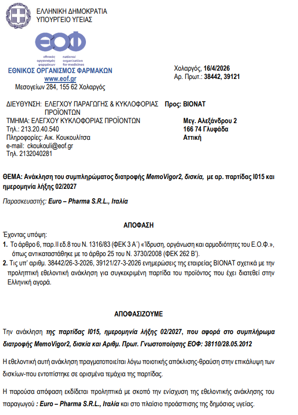 Αρχική » Ανάκληση γνωστού συμπληρώματος για τη μνήμη από τον ΕΟΦ