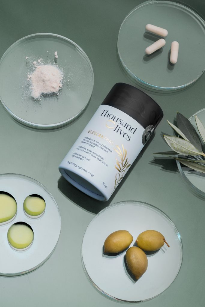 Το Thousand Olives® είναι ένα καινοτόμο, φυσικό συμπλήρωμα διατροφής από εξαιρετικό παρθένο ελληνικό ελαιόλαδο πρώιμης συγκομιδής (αγουρέλαιο) πλούσιο σε πολυφαινόλες. Βασίζεται σε πρωτοποριακή πατέντα* εκχύλισης και απομόνωσης ελαιοκανθάλης και άλλων πολυφαινολών. Αποτελεί αποτέλεσμα 20ετούς έρευνας Καθηγητών του Τμήματος Φαρμακευτικής του Εθνικού & Καποδιστριακού Πανεπιστημίου Αθηνών.