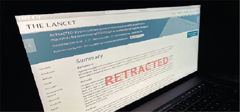 Την άνοιξη του 2020, το Ιατρικό Επιστημονικό Περιοδικό The Lancet απέσυρε ένα άρθρο, το οποίο αναφερόταν στην υδροξυχλωροκίνη, η οποία μετά από χορήγηση της σε ασθενείς με Covid-19, σχετίστηκε με αυξημένο κίνδυνο θανάτου.
